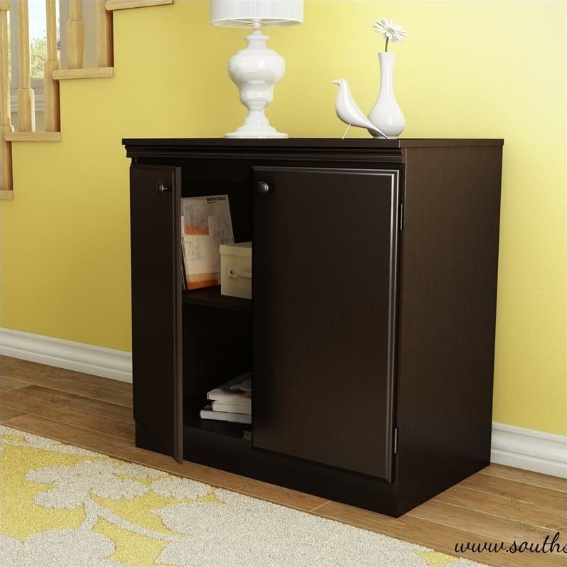 South Shore - Storage Cabinets - 7259722 - This Morgan storage cabinet in Chocolate finish is stylish, practical and perfect for all storage needs. It can fit well in any kind of room, whether if it's the office, bedroom, basement, or even the garage. It features 1 adjustable shelf and has metal knobs in a black finish. For complete interior dimensions, see spec sheet. Pair it with the rest of the Morgan collection or use 2 or more units side by side to form a well organized decor. Manufactured from certified Environmentally Preferred laminated particle panels. Complete ... Read more