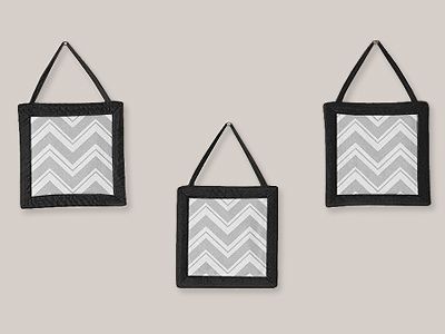 Black and Gray Zig Zag Collection 3-piece set of plush wall art hangings are great to add style and a splash of color to any bedroom. These wonderful plush wall decorations can enhance the decor of any child's room. Features: -Black and Gray Zig Zag collection. -Colors: Muted Gray, Black, and Crisp White. -Material: 100% Cotton. -Gender: Unisex. -Machine washable and dryable. -Coordinates with all pieces of the matching collection. -Set of 3. Read more